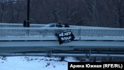 Омск: на мосту вывесили баннер в поддержку "Летов-аэропорта"