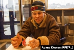 – Четыре года назад я в первый раз приехал к этому гипермаркету. Мне тут понравилось. Чем-то приглянулось это место. Охранники сначала меня не приняли: выгоняли, ругались. Потом привыкли, начали уважать за то, что помогаю бесплатно, позволяют из подсобки брать лопаты для чистки снега. Администрация комплекса тоже нормально реагирует. Обычно я приезжаю сюда на месяц, потом опять к тете в деревню в Муромцевский район. Как станет там скучно, снова в город. Живу тут или у друга, или у сестры. Когда не охота ехать к ним, бывает, что здесь, в круглосуточном кафе ночую. Тут у меня друзья среди охранников.