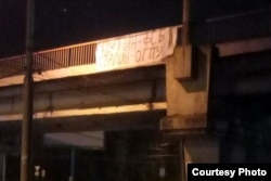 В центре Новосибирска, на автомобильной развязке неизвестные вывесили 18 июля растяжку с надписью: "Нет реабилитации сталинизма". Баннер появился рядом с автовокзалом и в нескольких сотнях метров от штаба обкома КПРФ, где ранее установили бюст Сталина. Издание "Тайги.инфо" отмечает, что полотно изготовлено вручную, а не в типографии.