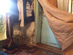 На вопрос, как проехать к дому, Наталья отвечает, что ее барак легко узнать по заколоченным окнам. Двухэтажное строение 19-го века находится почти в центре Ялуторовска. Вход в подъезд напоминает сарай: ветхие деревянные двери и "предбанник", как в частном доме. Дверь в квартиру Натальи закрыта одеялом из-за щелей в проеме и у порога. Хозяйка встречает в верхней обуви и нескольких кофтах. За окном –5, поэтому, говорит Наталья, дома тепло: +14. В квартире давно никто не снимает обувь, для этих целей у Натальи припасены бахилы. Ходить босиком или даже в тапочках очень холодно. У входа – бита. Недавно окно Натальи разбили. По словам хозяйки, это сделал полицейский, сын соседа, который не желает съезжать из барака и угрожает Наталье.