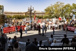 "Путин – вор", "ЕдРо – помойное ведро", "Путин, выпей чаю, Хабаровск угощает", "Долой путинский беспредел", "Двадцать лет – доверия нет" – эти кричалки и транспаранты уже стали визитной карточкой субботних митингов. Не забыли о них и сегодня, в десятую протестную субботу.