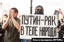 В шествии снова люди скандировали "Путин – вор", "Живе Беларусь", "Полицаи – дармоеды", "Камчатка, мы с тобой", "Путин, выпей чаю", "Трутнева и Дегтярева – в Лефортово!", "Европа, вводи санкции!".