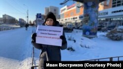 Жители Дальнего Востока и Сибири проводят одиночные пикеты в поддержку оппозиционера Алексея Навального, который накануне вернулся из Германии в Россию. Сразу же по прилёте в Москву его задержали.
