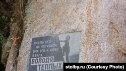 В 1899 году учитель Денисюк, студент Белов и профессиональный революционер Островский сделали на Втором столбе надпись огромными буквами: "Свобода". Надпись жива до сих пор. Ее обновление – один из важных столбистских ритуалов. А обновлять надпись иногда приходится: краска выцветает. Последний раз это было сделано в 2001 году.