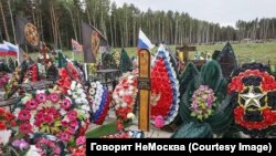 Пропавшего без вести Валерия Зятькова похоронили почти спустя год после его гибели. 30-летнему Роману Барабанову, которого не стало в мае, под фото, где он в куртке цвета хаки с нашивкой V сидит у дерева и улыбается, принесли охапку алых роз. На могиле Максима Калашникова стоит лампада и лежат конфеты.