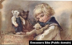 – Елизавета Бём была одним из основоположников русской иллюстрированной открытки, и у нее появилось масса подражателей, – рассказывает Лев Боярский. – На нашей выставке можно увидеть целые серии открыток, выполненных в похожей манере в начале XX века. Это 15 рождественских и пасхальных открыток Елены Лебедевой-Анохиной, 38 открыток из серии "Дети на войне" Александра Лаврова, а также все 10 открыток серии "Дети-политики" Владимира Табурина.