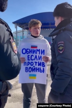 Жителя Ижевска Никиту Горбунова 18 апреля оштрафовали на 30 тысяч рублей за "дискредитацию" после того, как он вышел на одиночный пикет с плакатом "Обними, если против войны". Как рассказывал Горбунов, мужчина и женщина, свидетельствовавшие по его делу, во время пикета назвали его "сученышем", а флаг Украины – фашистским, и обещали доложить "куда следует".