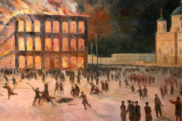 Владимир Вучичевич-Сибирский "Томский погром". Репродукция из коллекции Томского областного краеведческого музея им. М. Б. Шатипова