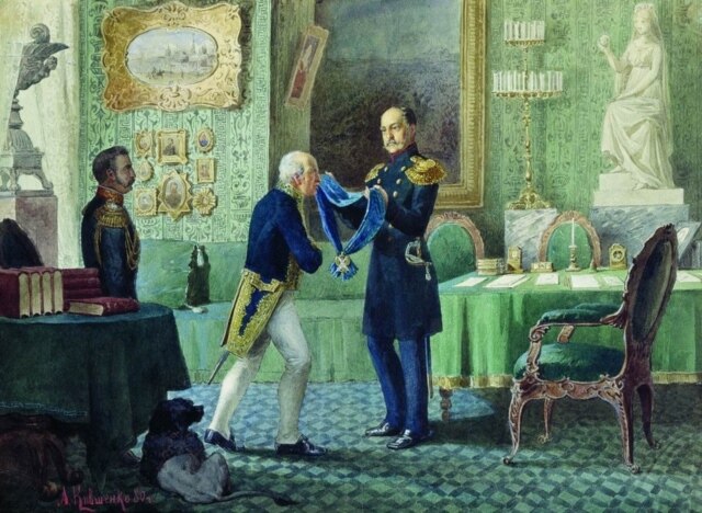 "Император Николай I награждает Сперанского за составление свода законов". Картина А. Кившенко