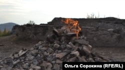 Посреди степи полыхает "костер", со всех сторон аккуратно обложенный камнями. Не затухает, не разгорается, а просто горит ровным, сине-красным пламенем. Останавливаемся, подходим ближе, жарко и слегка пахнет газом – так же как в квартирах, где есть газовые плиты.