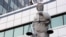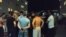 На видео с места, выложенном в социальных сетях, рабочие в спецовках закидывают офис камнями